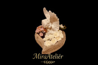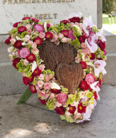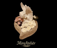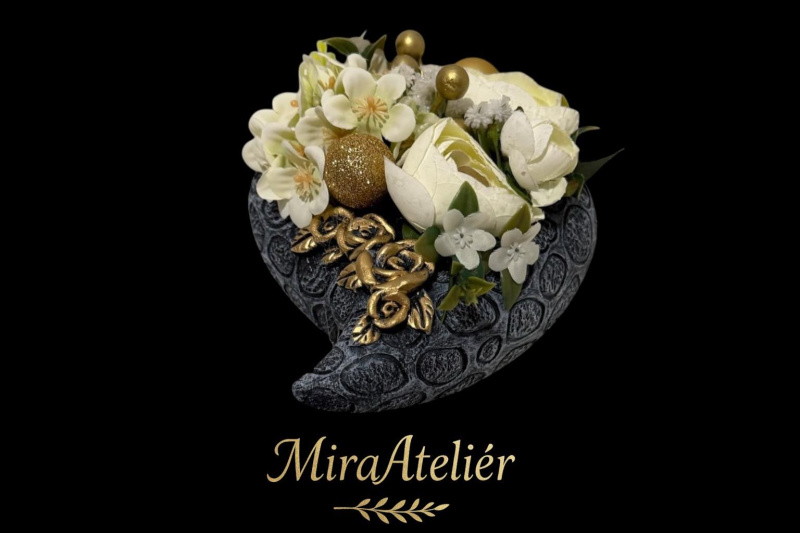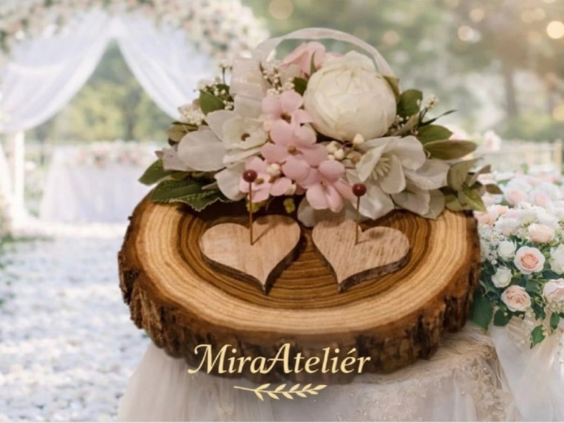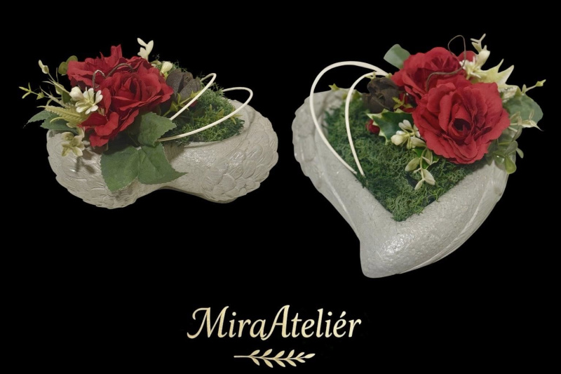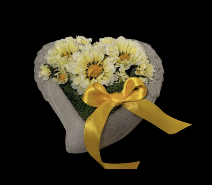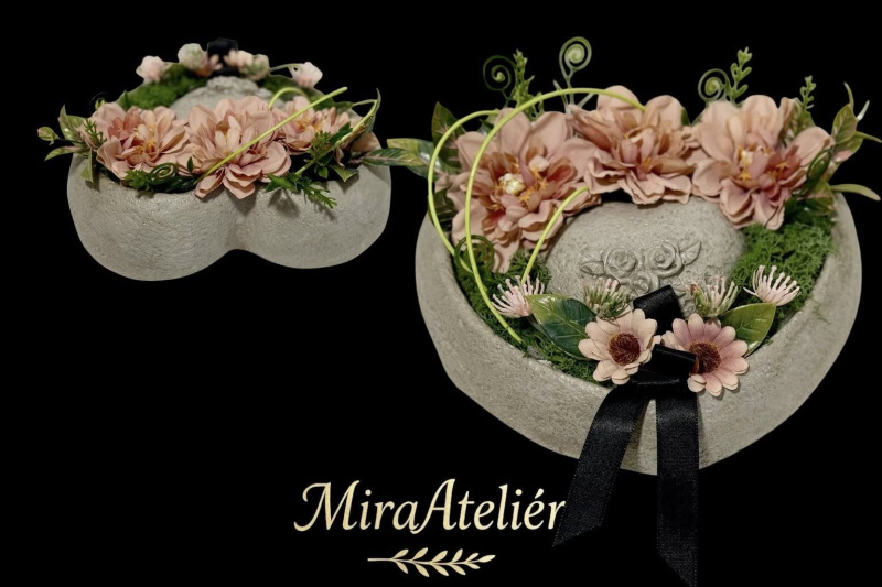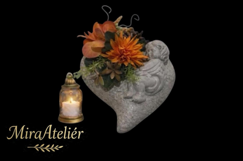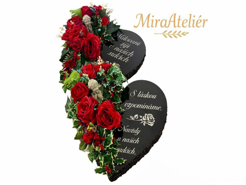 Srdce s dřevěným rozkládacím stojanem umožňujícím postavení do volného prostoru-otevřené.